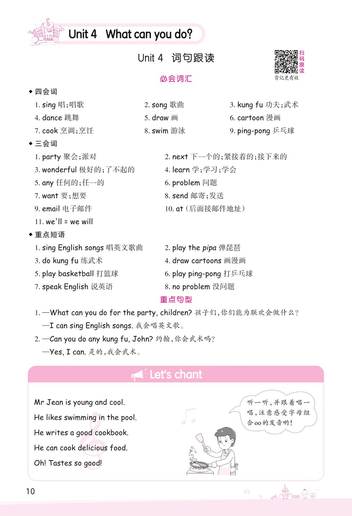 2022上册五年级英语人教PEP版 Unit 4 What can you do?—词句跟读