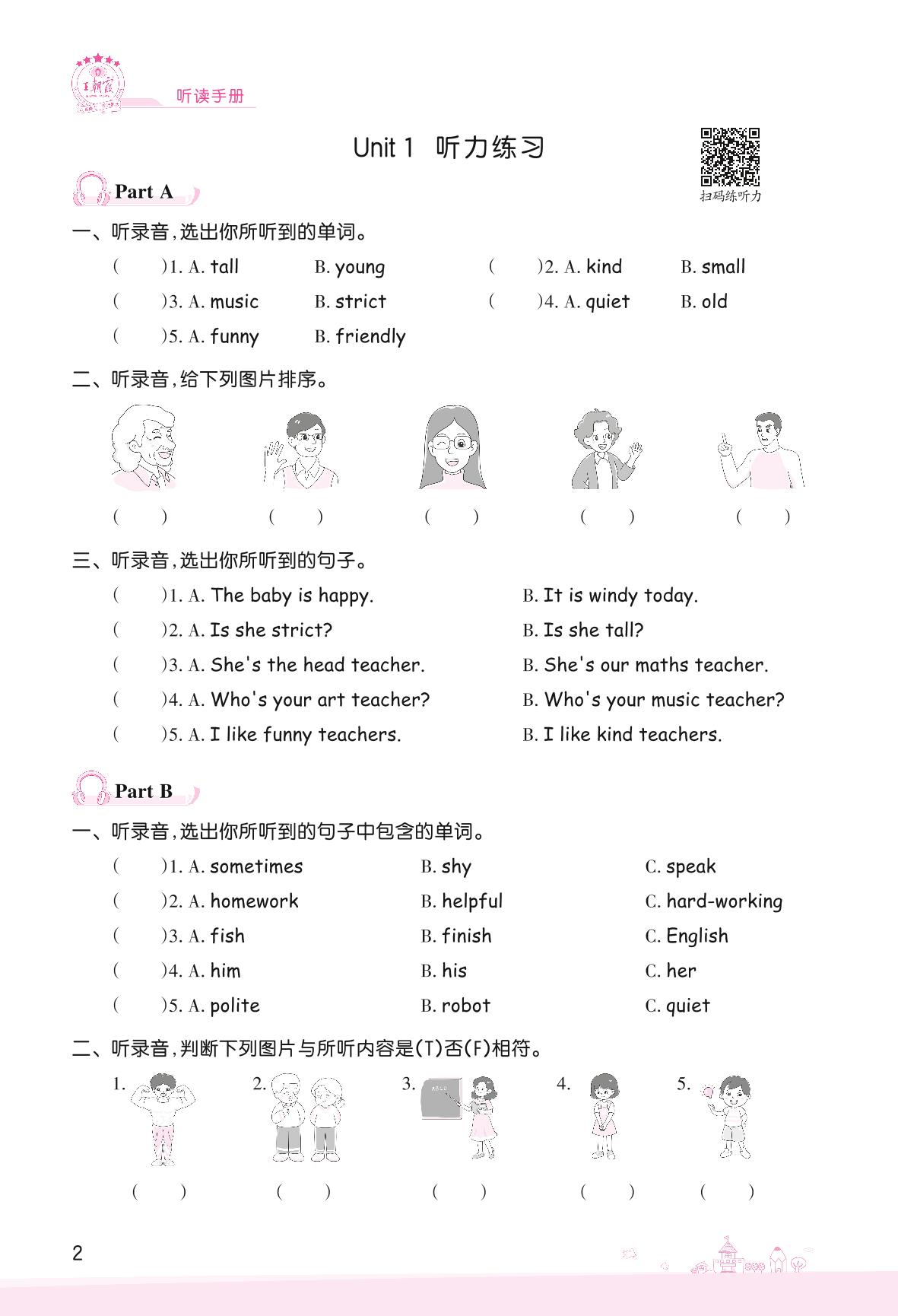 2022上册五年级英语人教PEP版 Unit 1 What’s he like?—Part A、Part B 听力练习