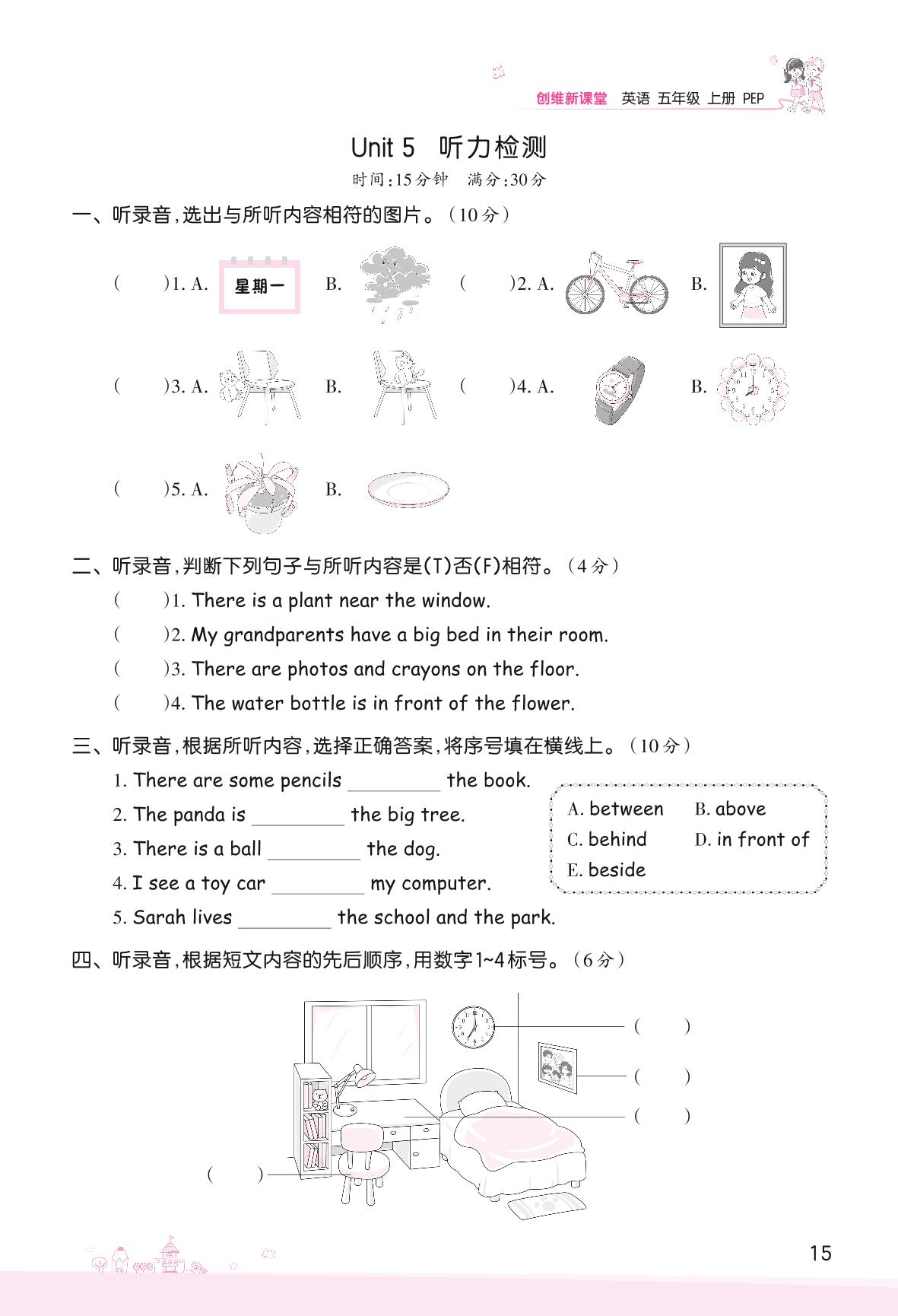 2022上册五年级英语人教PEP版 Unit 5 There is a big bed—听力检测