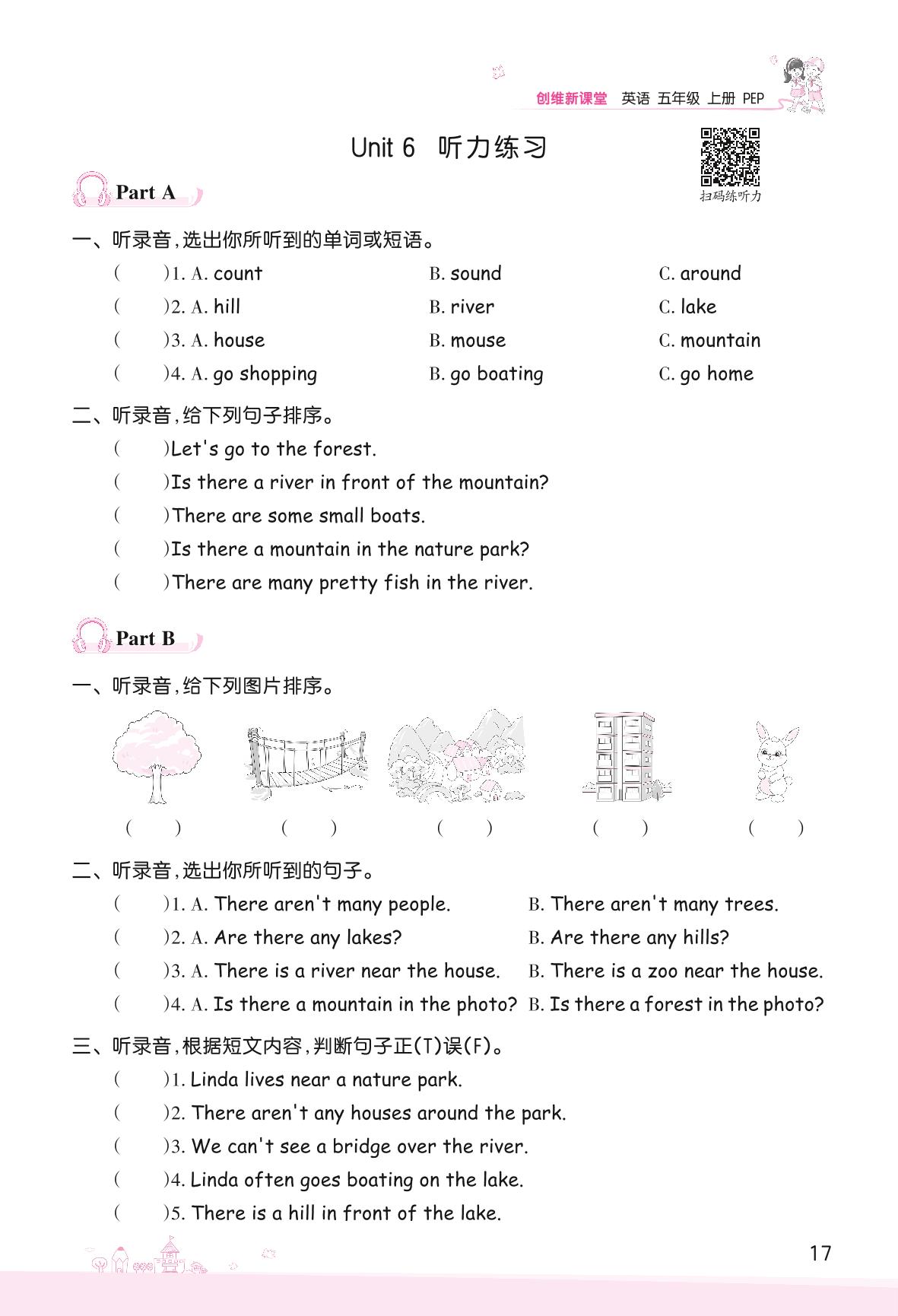 2022上册五年级英语人教PEP版 Unit 6 In a nature park—Part A、Part B 听力练习