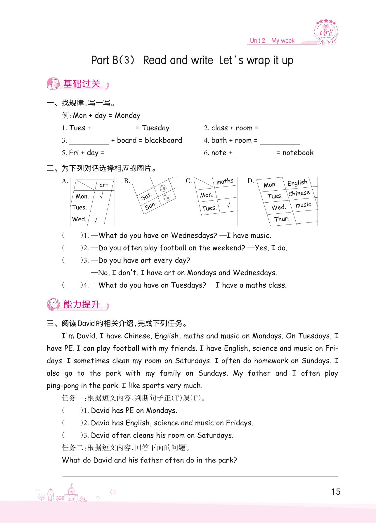 2022上册五年级英语人教PEP版 Unit 2—Part B(3) Read and write Let’s wrap it up