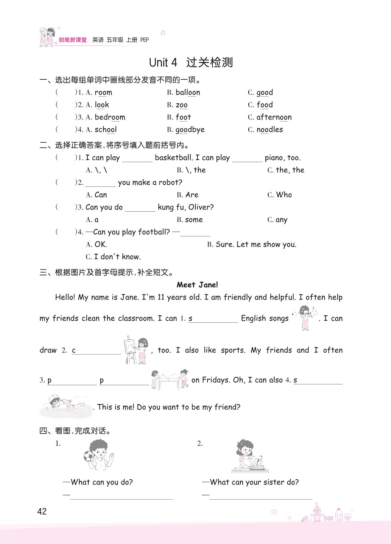 2022上册五年级英语人教PEP版 Unit 4 过关检测