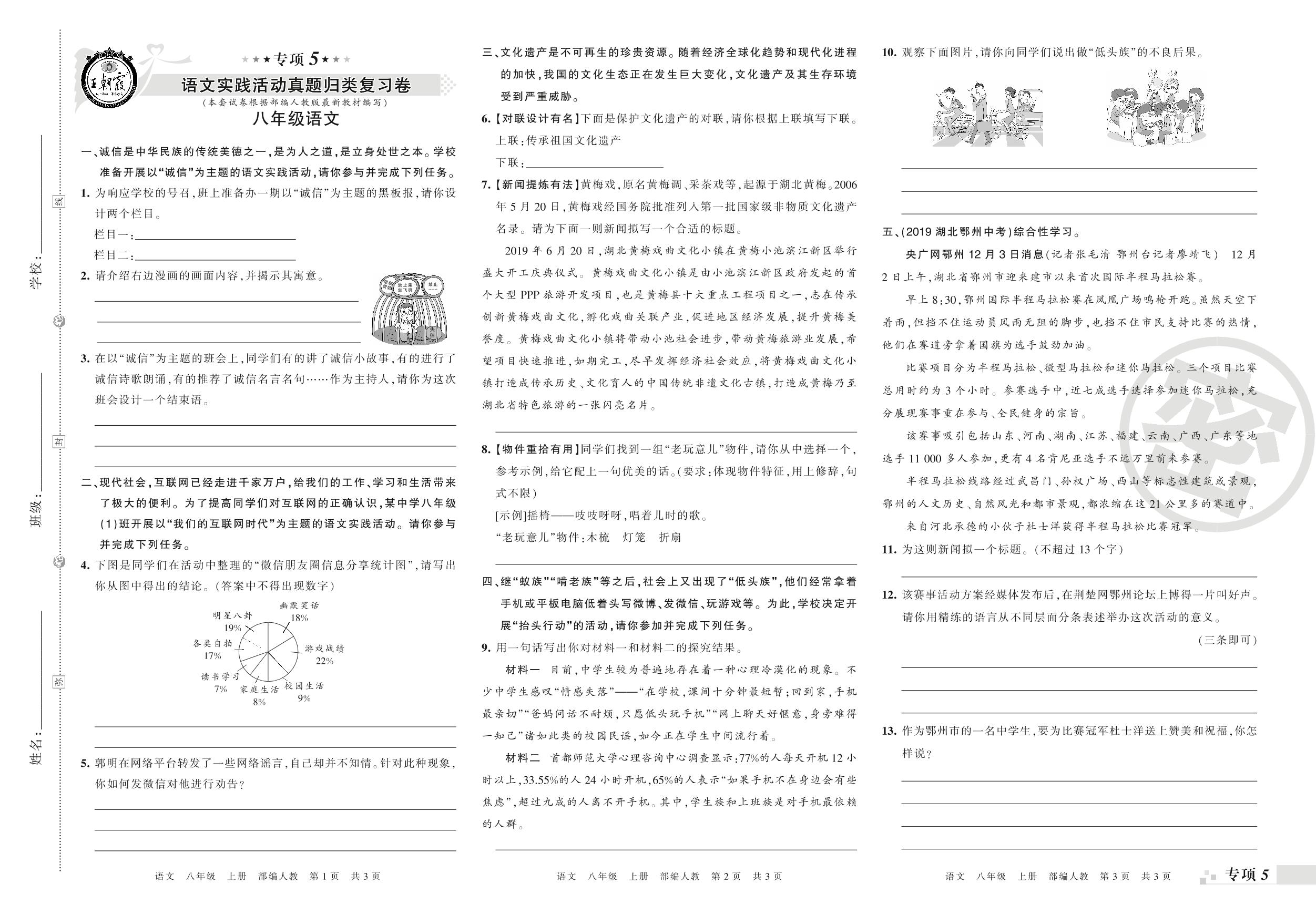 王朝霞期末专项卷——语文实践活动、文言文阅读真题归类复习八年级上册语文(人教版)_R21080234635【0】