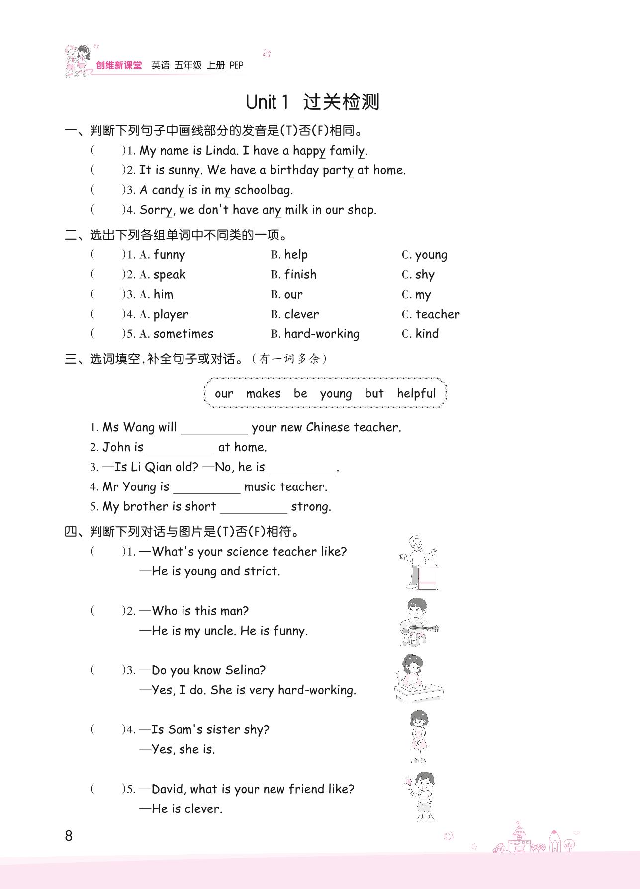 五年级英语人教PEP版(三起始)上册单元卷