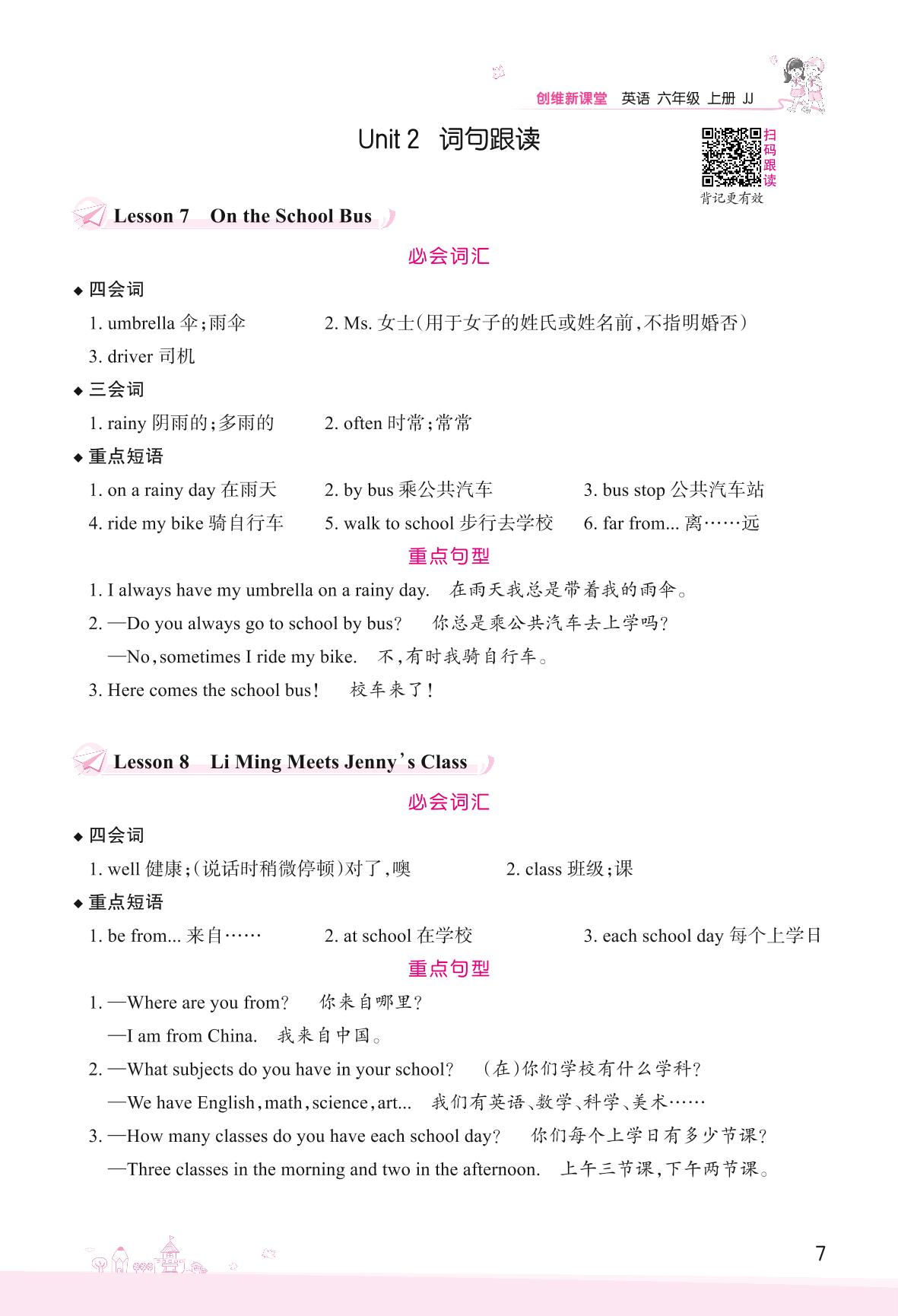 2022上册六年级英语冀教版 Unit 2 School in Canada—词句跟读