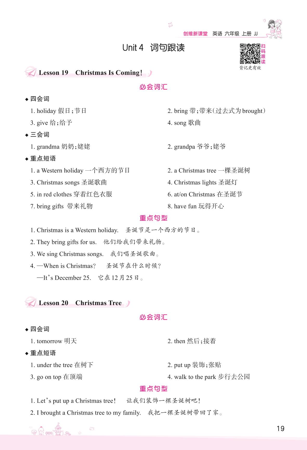 2022上册六年级英语冀教版 Unit 4 Christmas—词句跟读