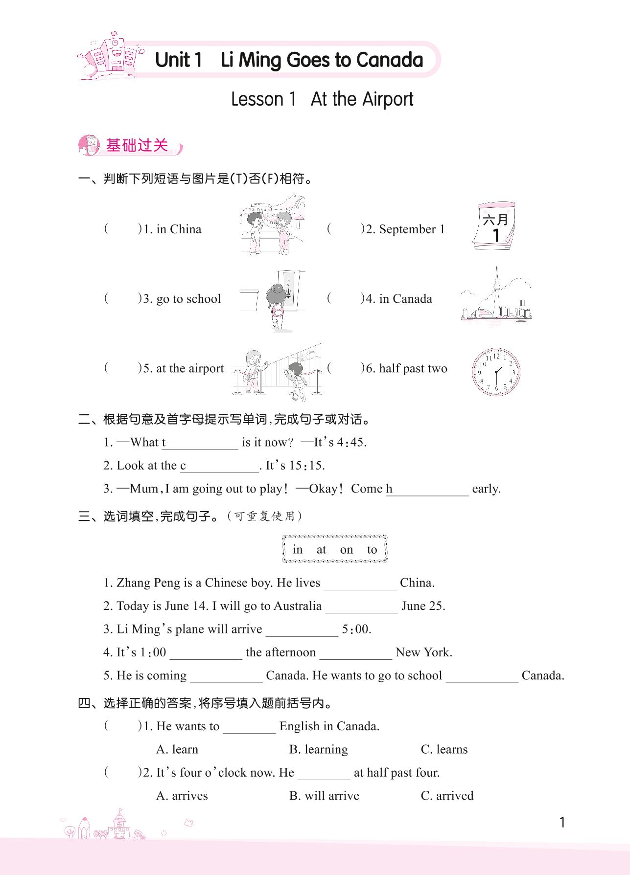 2022上册六年级英语冀教版 Unit 1—Lesson 1 At the Airport