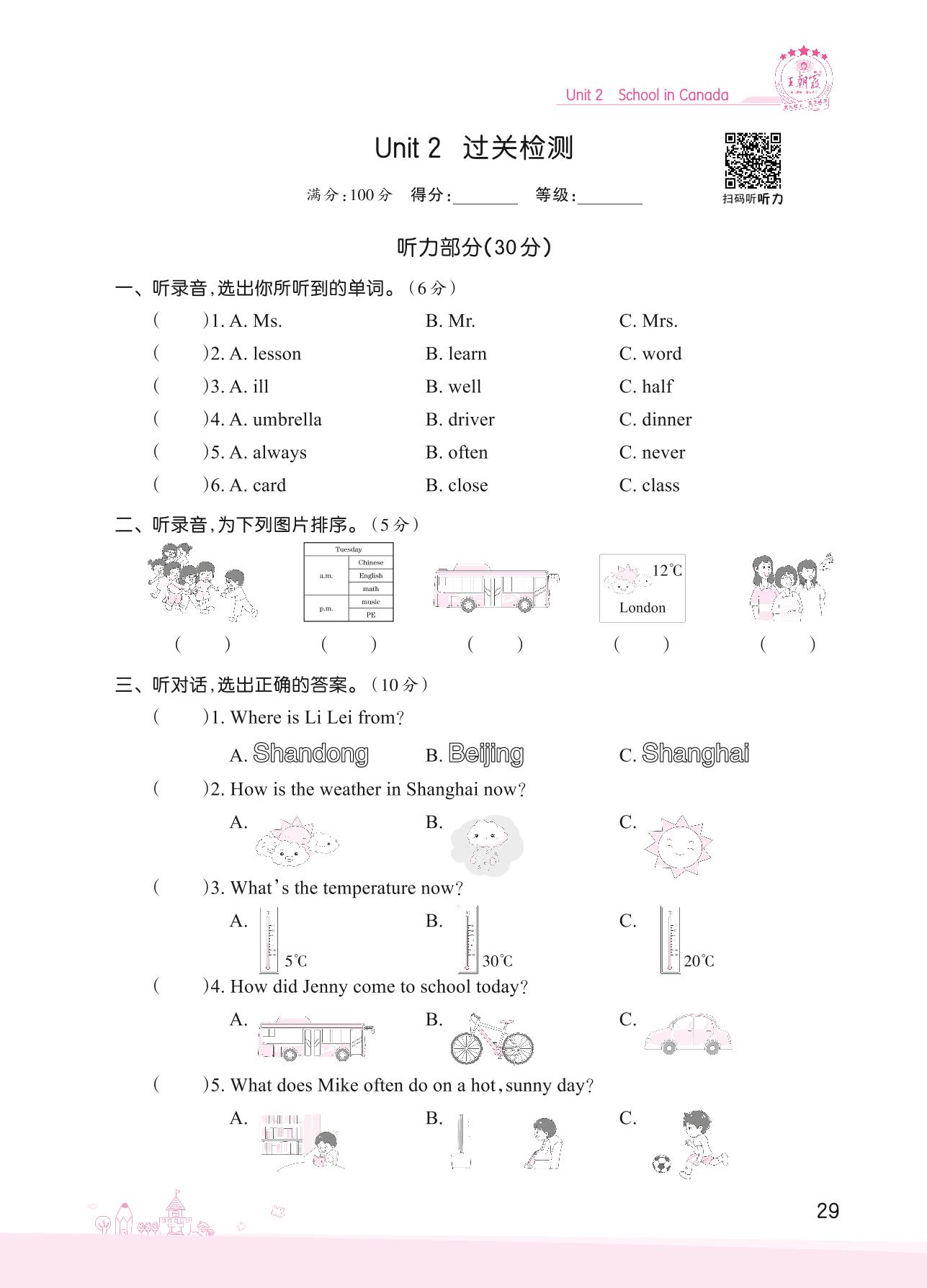 六年级英语冀教版上册单元卷