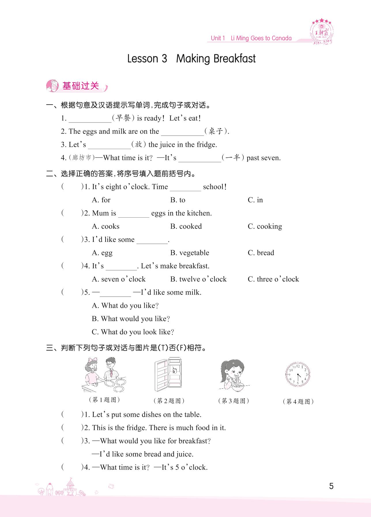 2022上册六年级英语冀教版 Unit 1—Lesson 3 Making Breakfast