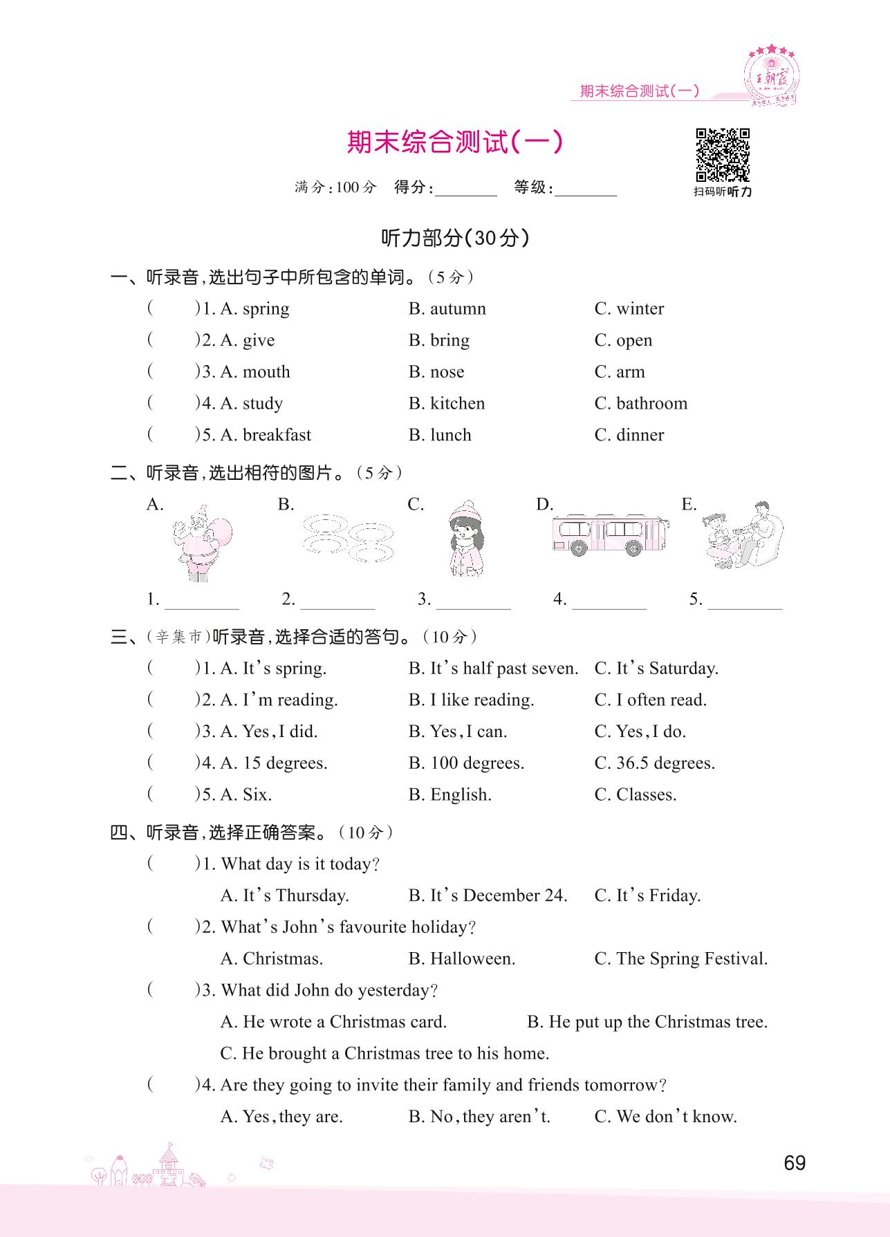 六年级英语冀教版上册期末卷