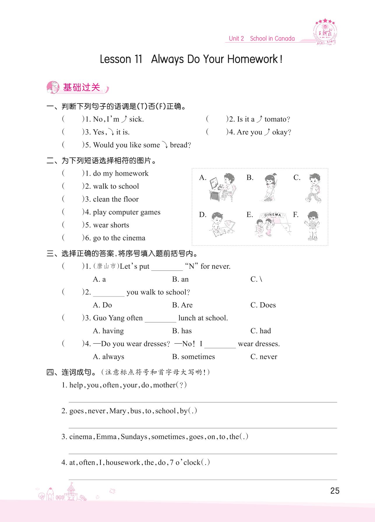 2022上册六年级英语冀教版 Unit 2—Lesson 11 Always Do Your Homework!