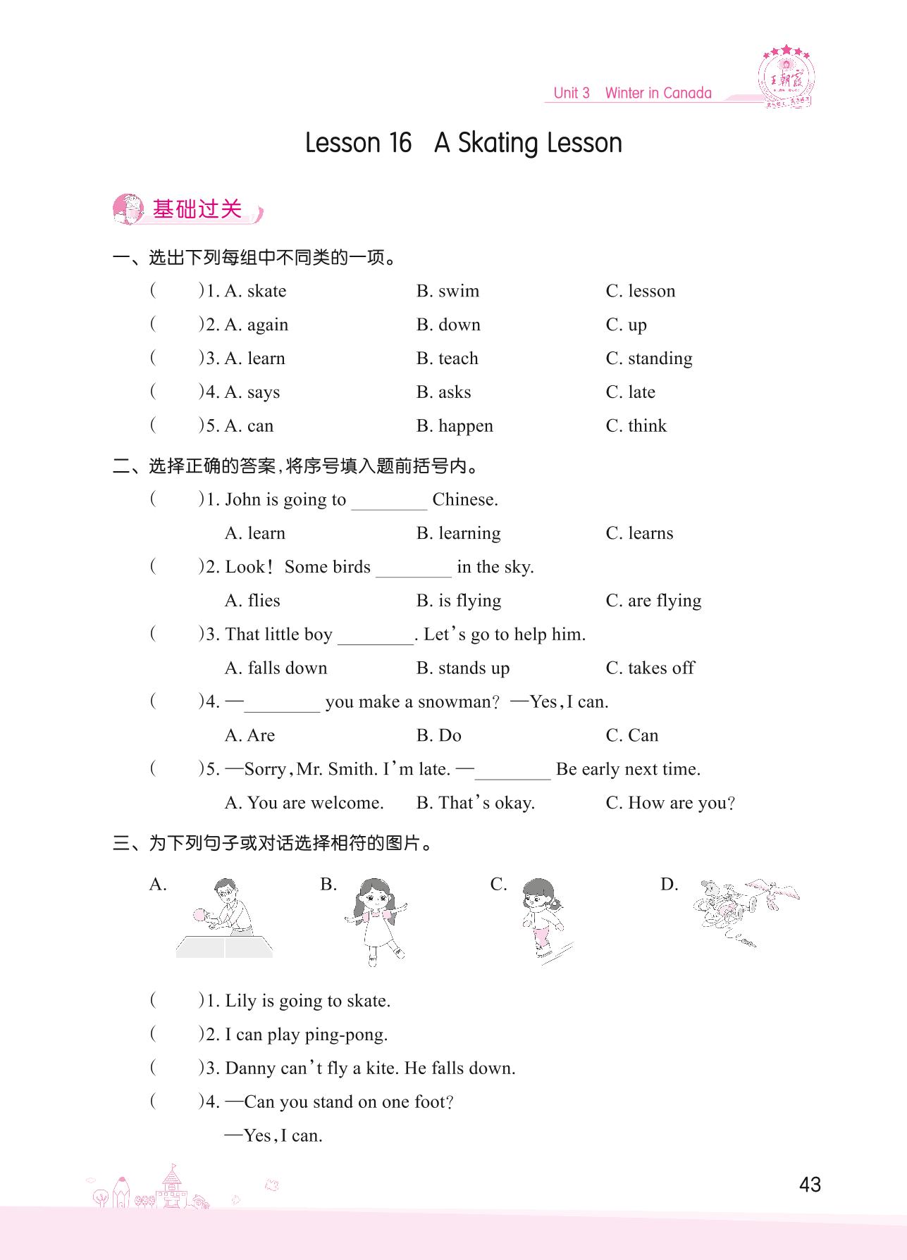 2022上册六年级英语冀教版 Unit 3—Lesson 16 A Skating Lesson