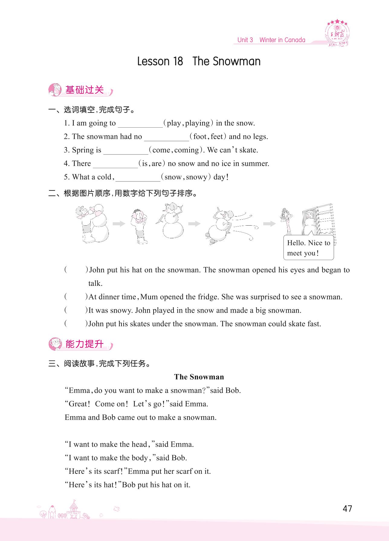 2022上册六年级英语冀教版 Unit 3—Lesson 18 The Snowman