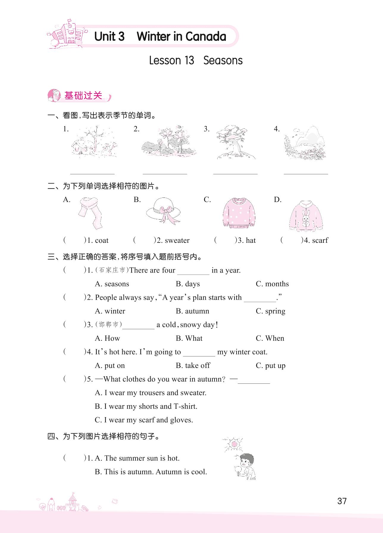 2022上册六年级英语冀教版 Unit 3—Lesson 13 Seasons