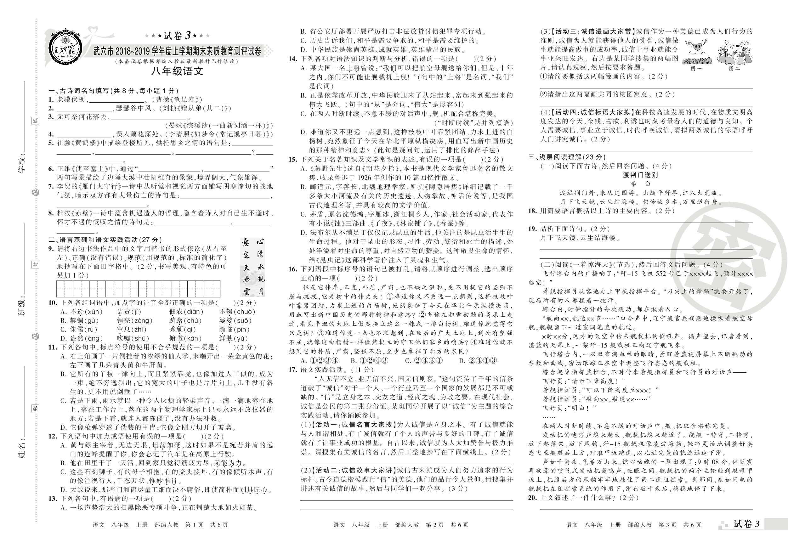 2018-2019学年第一学期武穴市八年级语文试卷(人教版)【3】