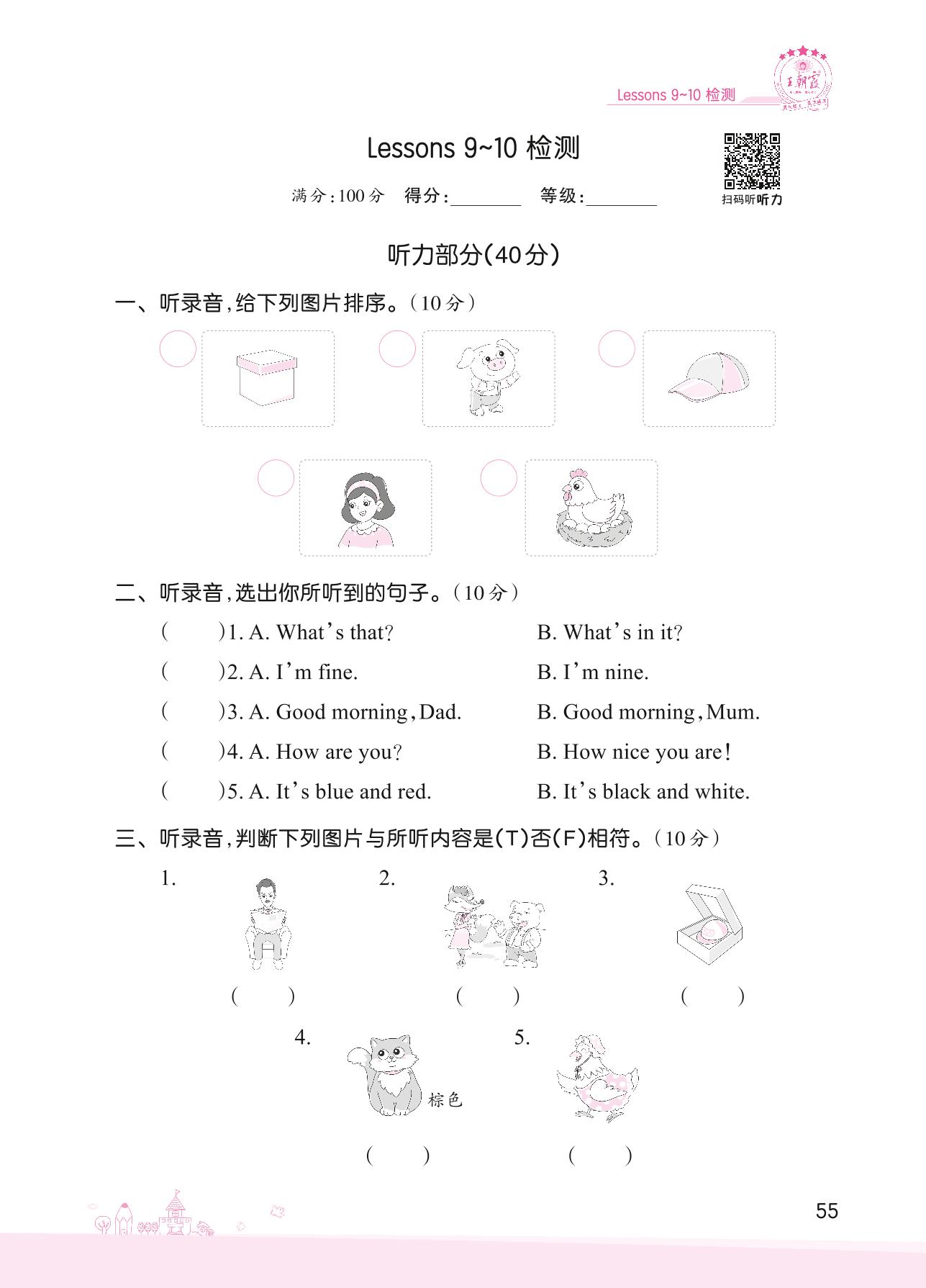 2022上册三年级英语科普版 Lessons 9~10 检测