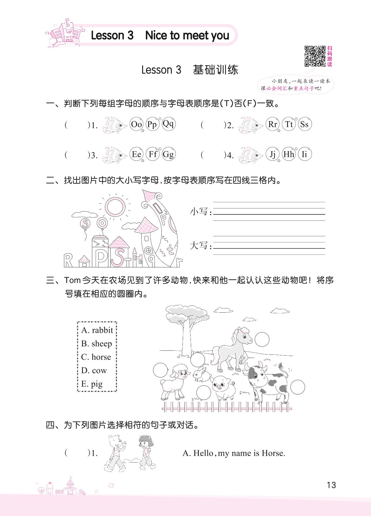 2022上册三年级英语科普版 Lesson 3 基础训练