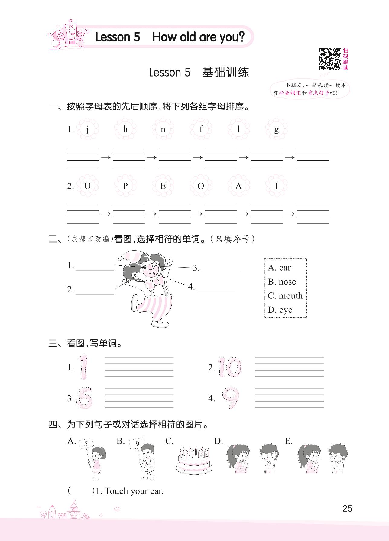 2022上册三年级英语科普版 Lesson 5 基础训练