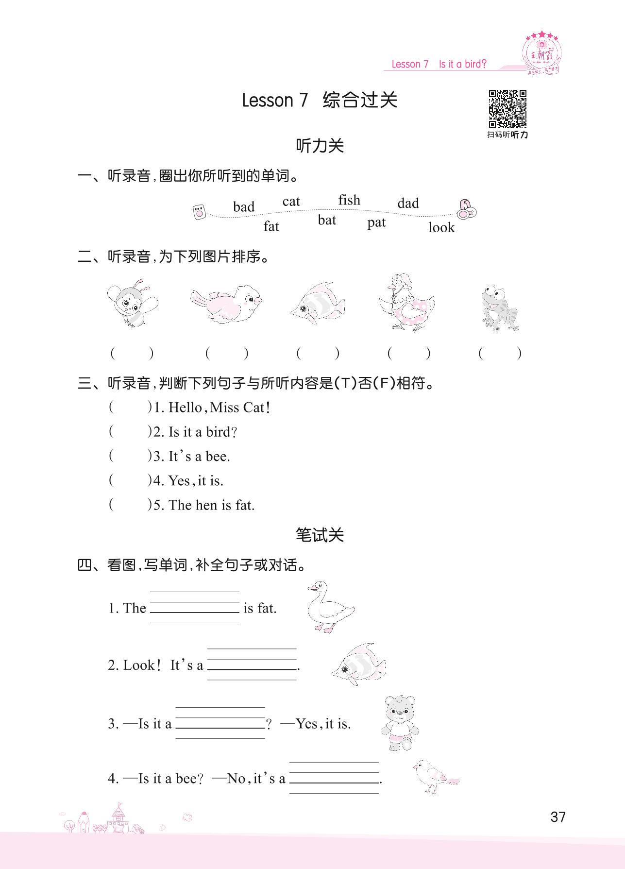 2022上册三年级英语科普版 Lesson 7 综合过关