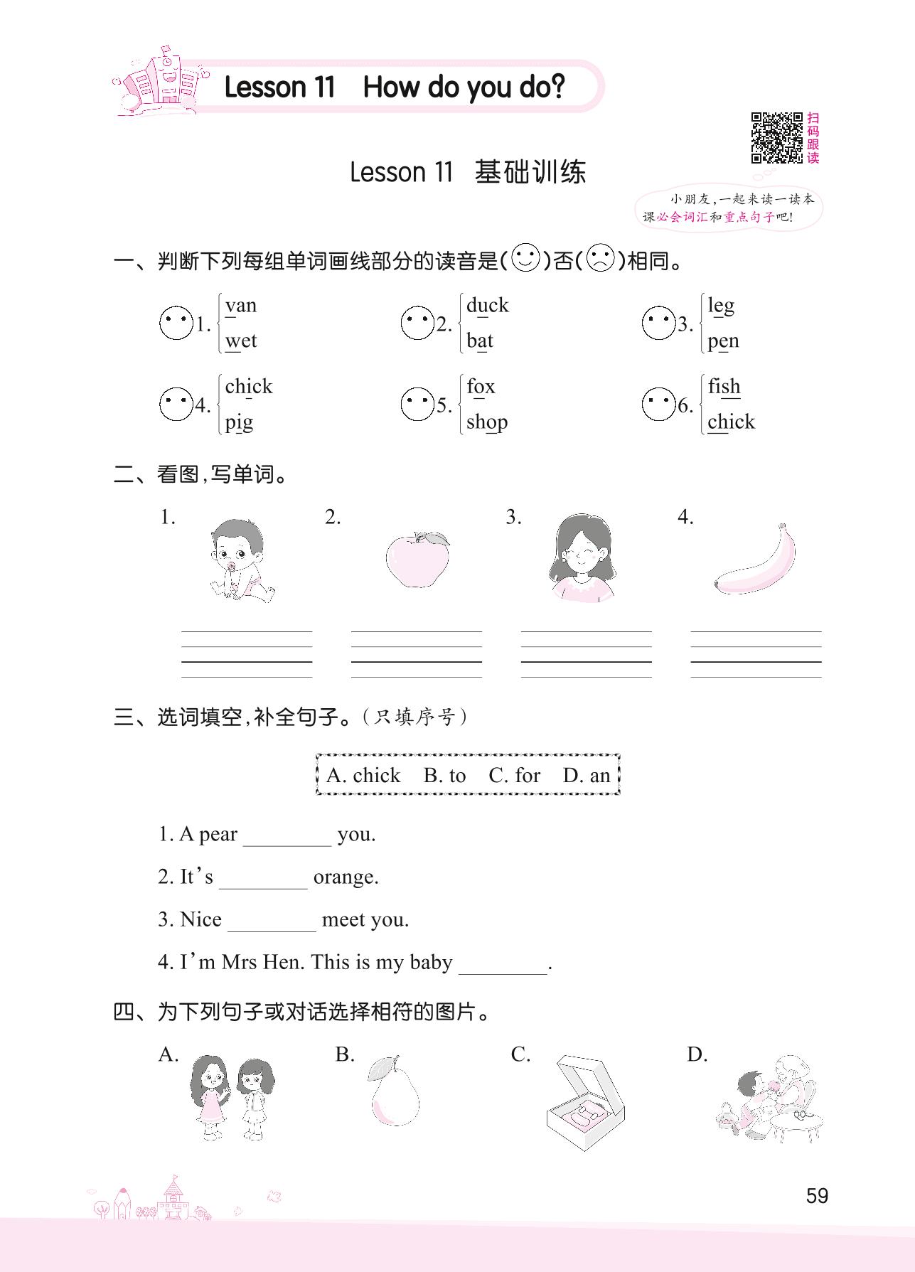 2022上册三年级英语科普版 Lesson 11 基础训练