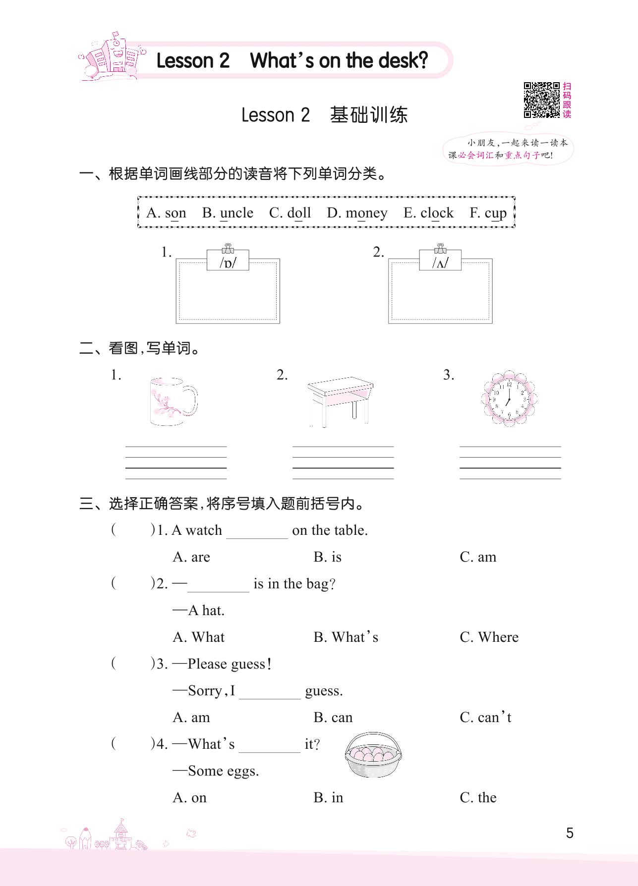 2022上册四年级英语科普版 Lesson 2 基础训练