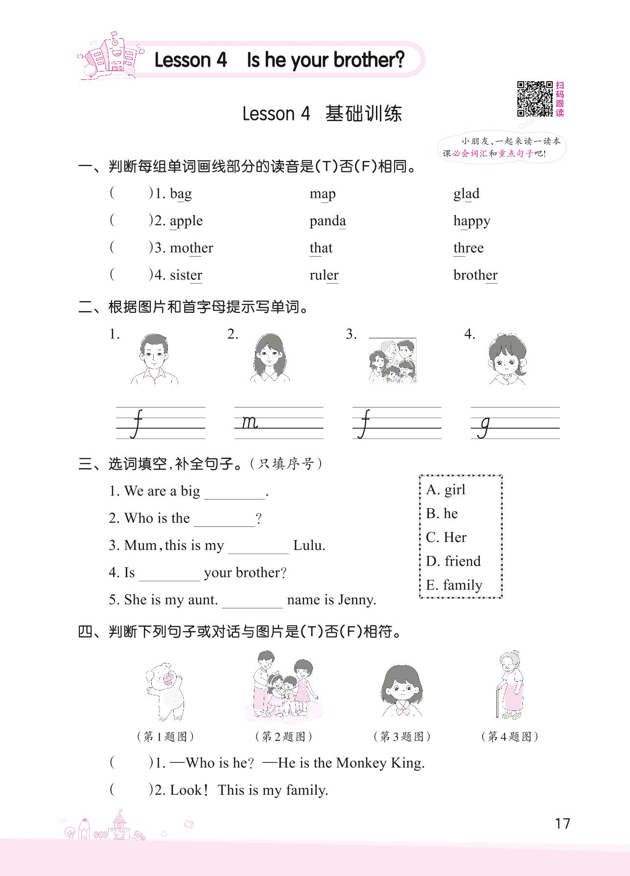 2022上册四年级英语科普版 Lesson 4 基础训练