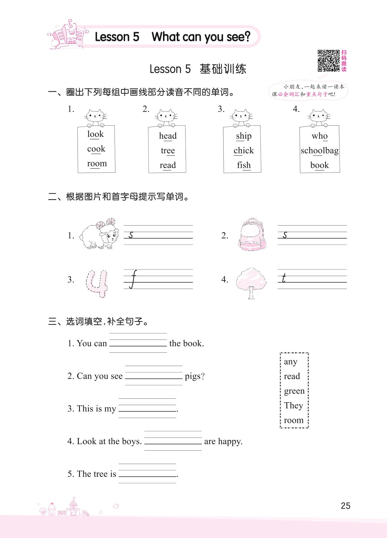 2022上册四年级英语科普版 Lesson 5 基础训练