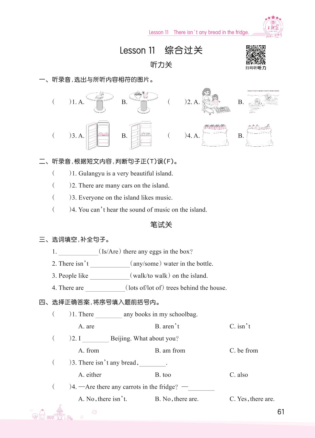 2022上册五年级英语科普版 Lesson 11 综合过关