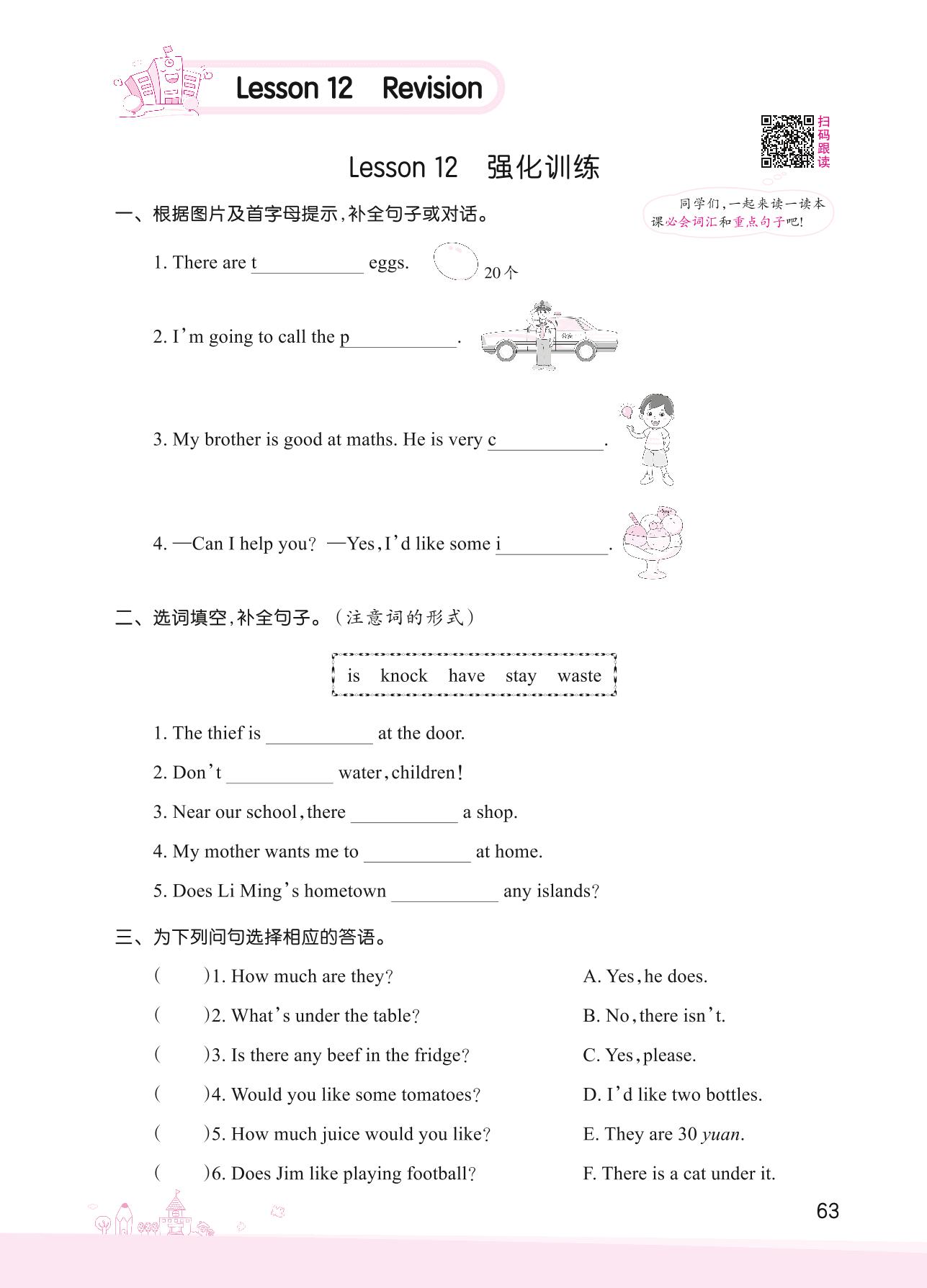 2022上册五年级英语科普版 Lesson 12 强化训练