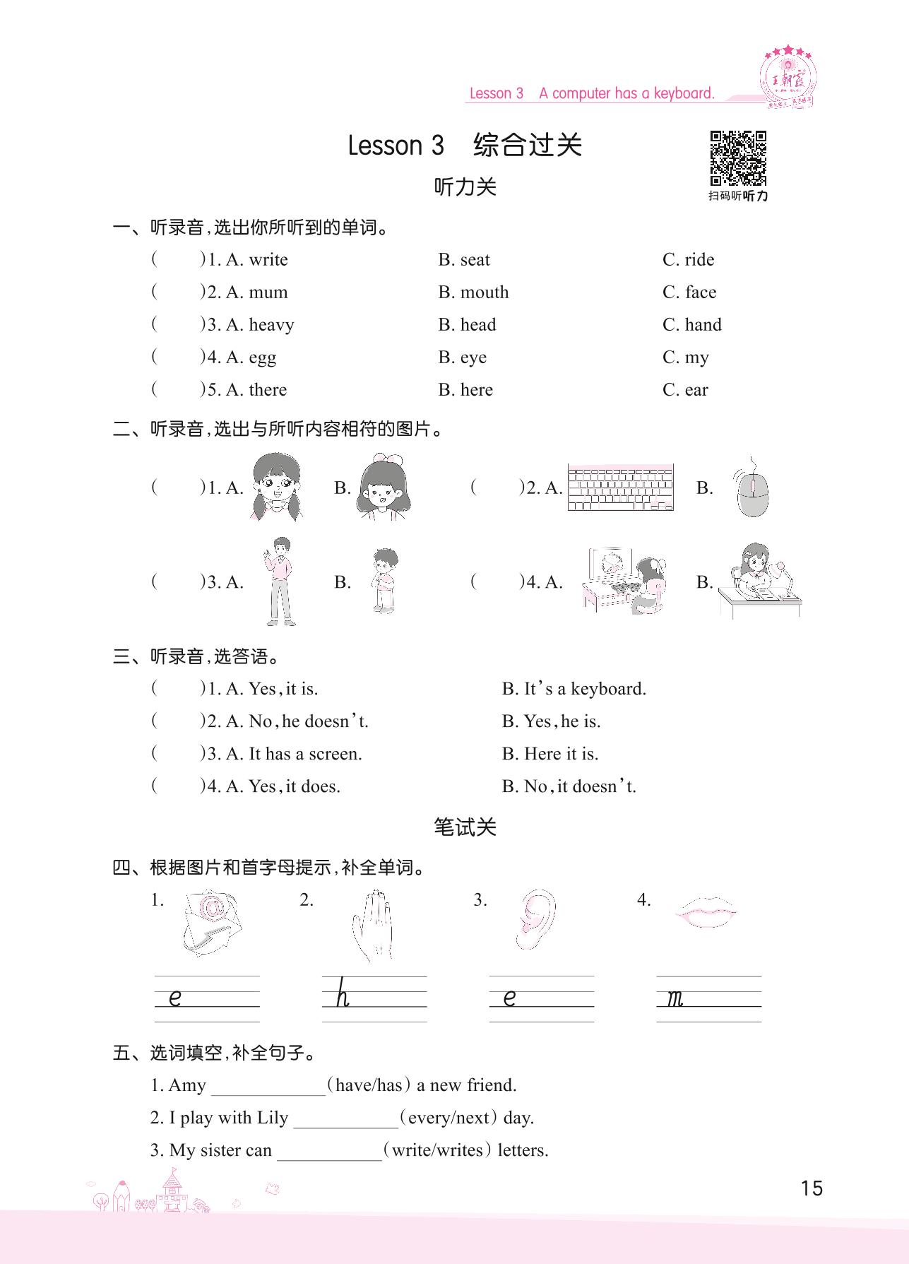 2022上册五年级英语科普版 Lesson 3 综合过关