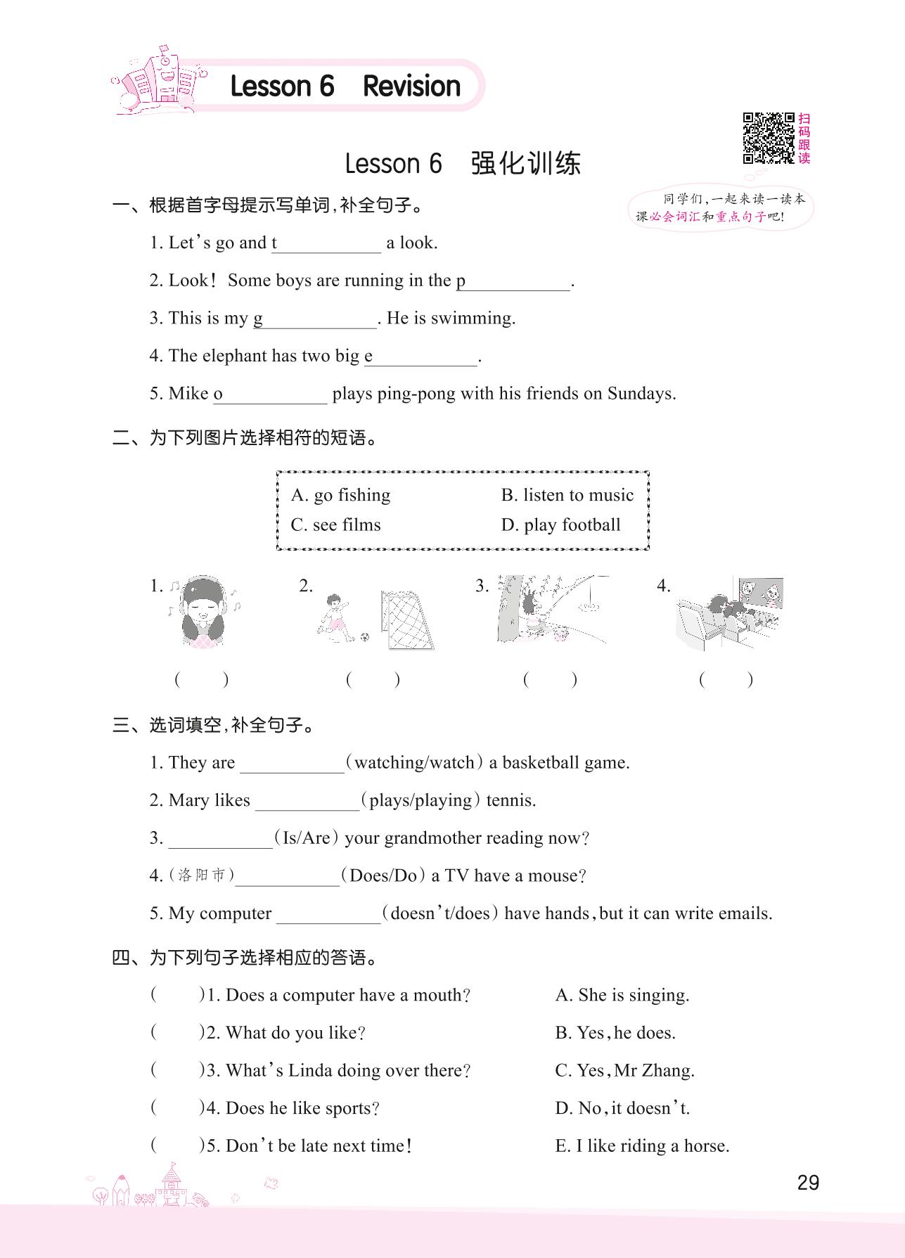 2022上册五年级英语科普版 Lesson 6 强化训练