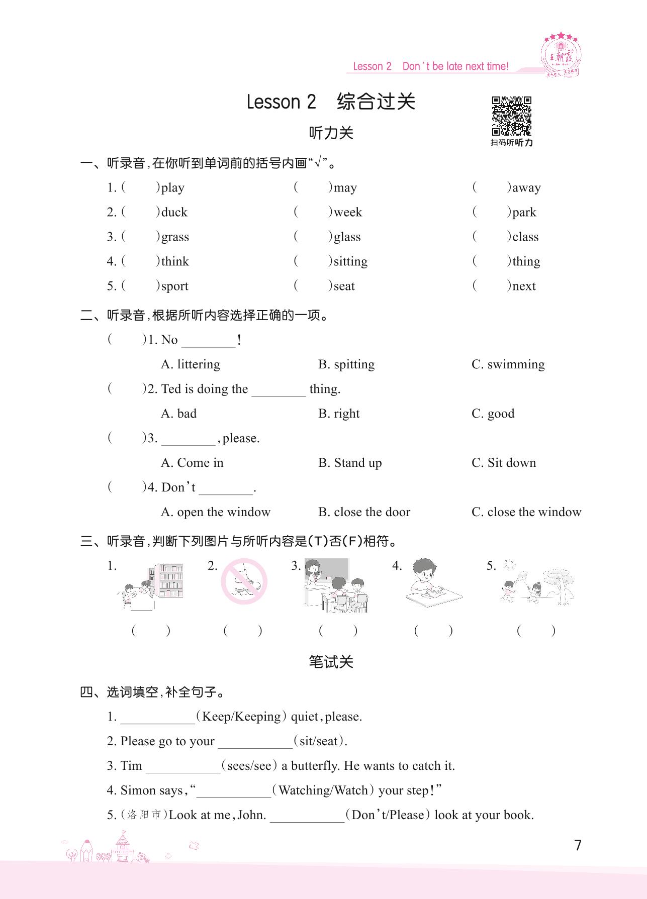 2022上册五年级英语科普版 Lesson 2 综合过关