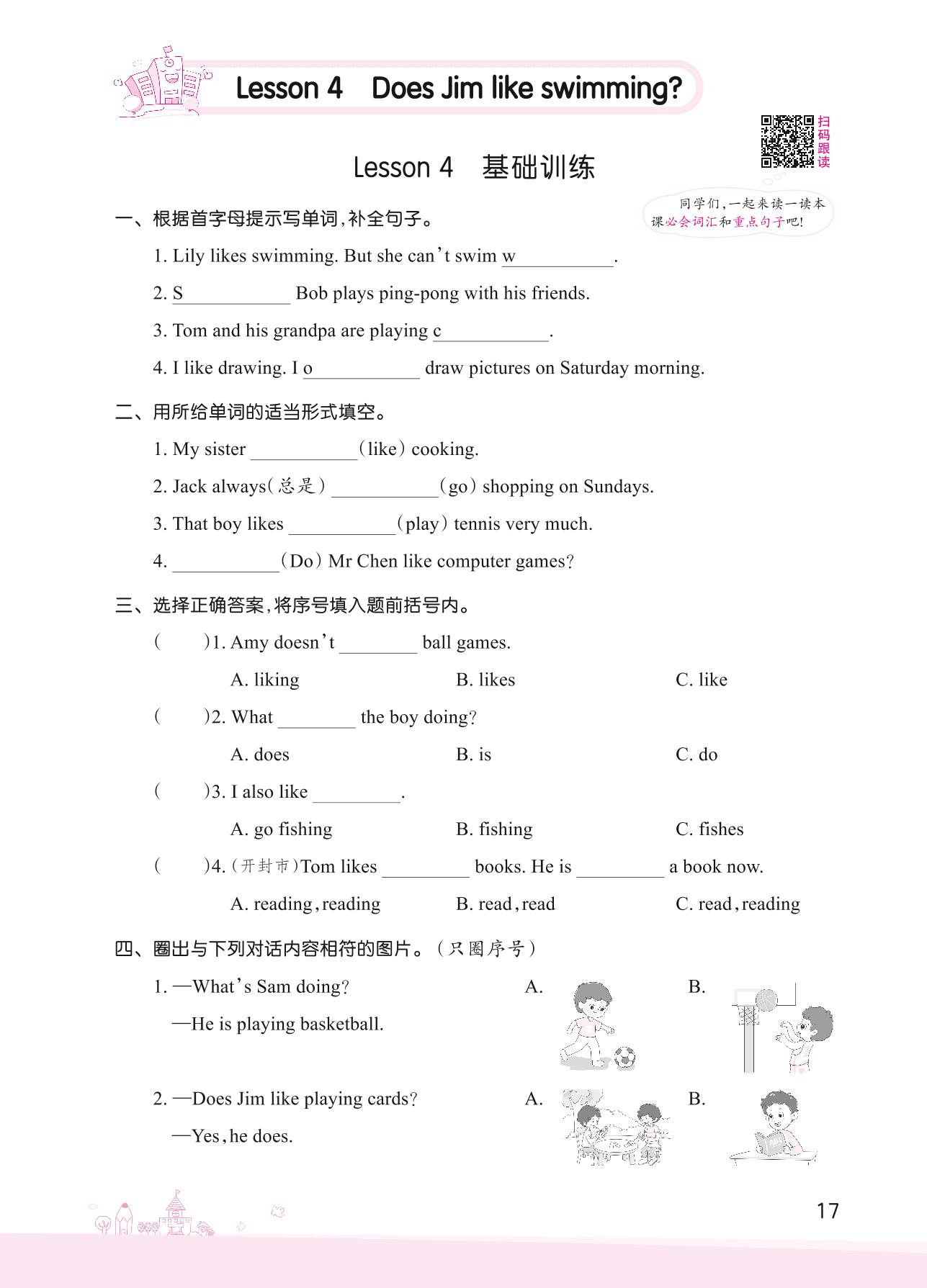 2022上册五年级英语科普版 Lesson 4 基础训练