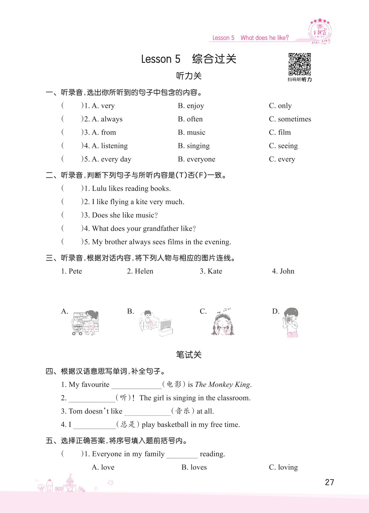 2022上册五年级英语科普版 Lesson 5 综合过关