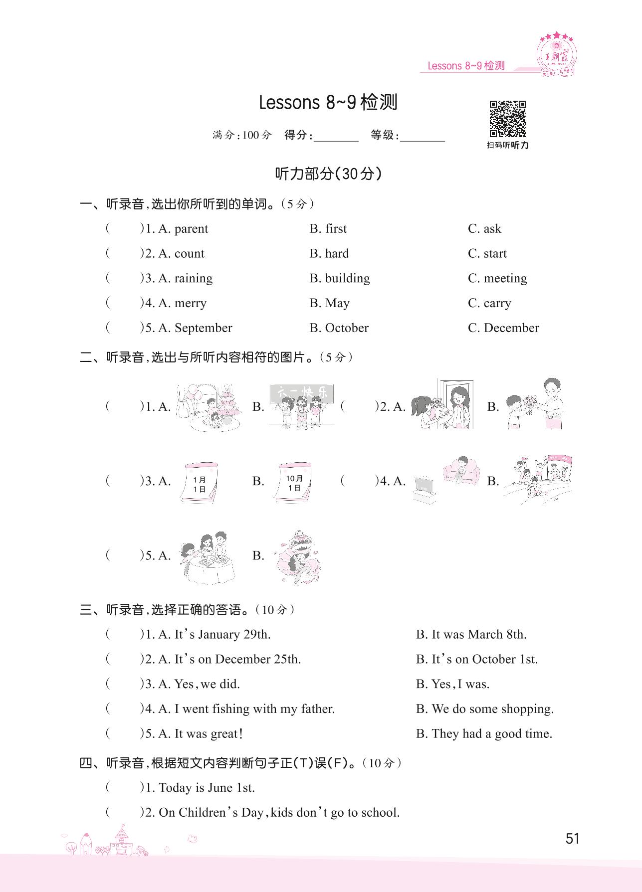 2022上册六年级英语科普版 Lessons 8~9 检测