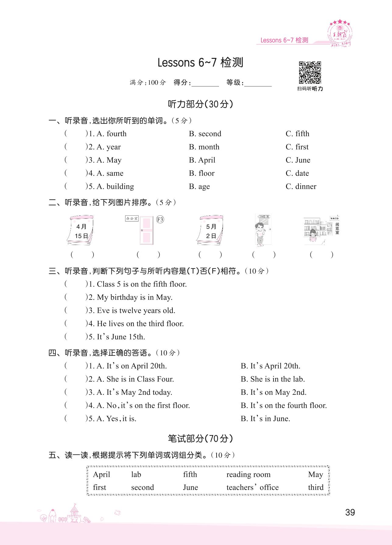 2022上册六年级英语科普版 Lessons 6~7 检测