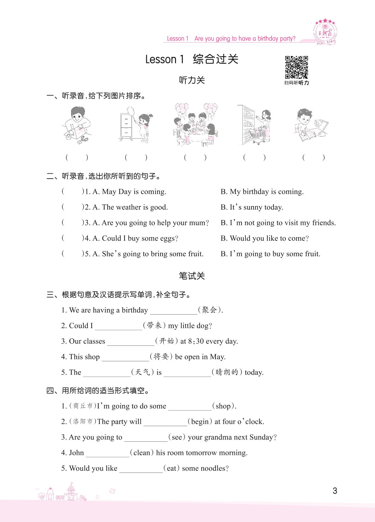 2022上册六年级英语科普版 Lesson 1 综合过关