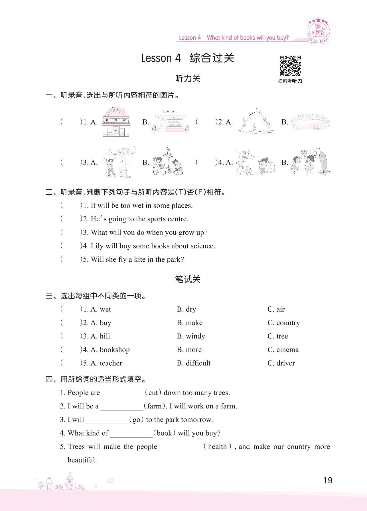 2022上册六年级英语科普版 Lesson 4 综合过关