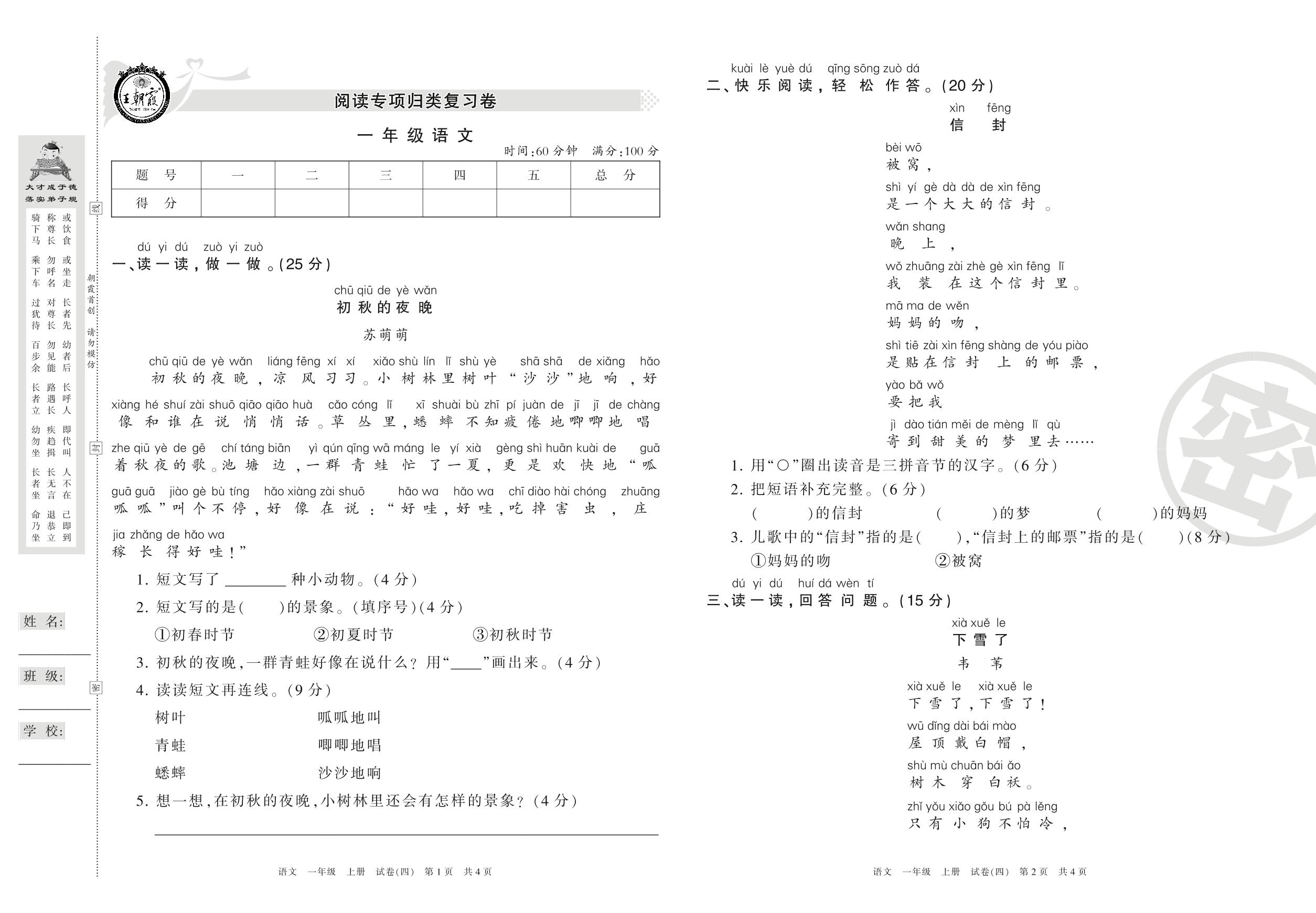 王朝霞期末专项卷一年级上册语文(人教版)_R210731184047【4】