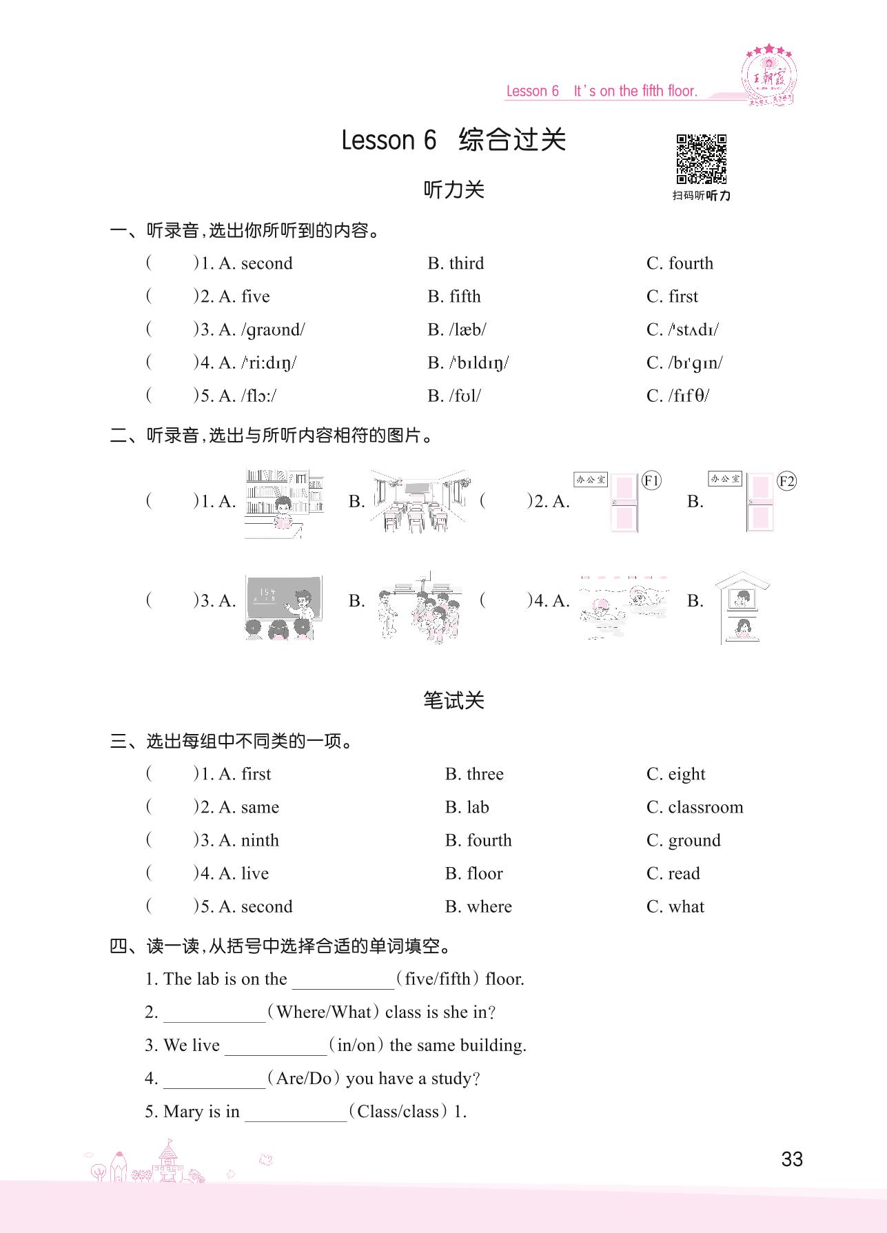 2022上册六年级英语科普版 Lesson 6 综合过关