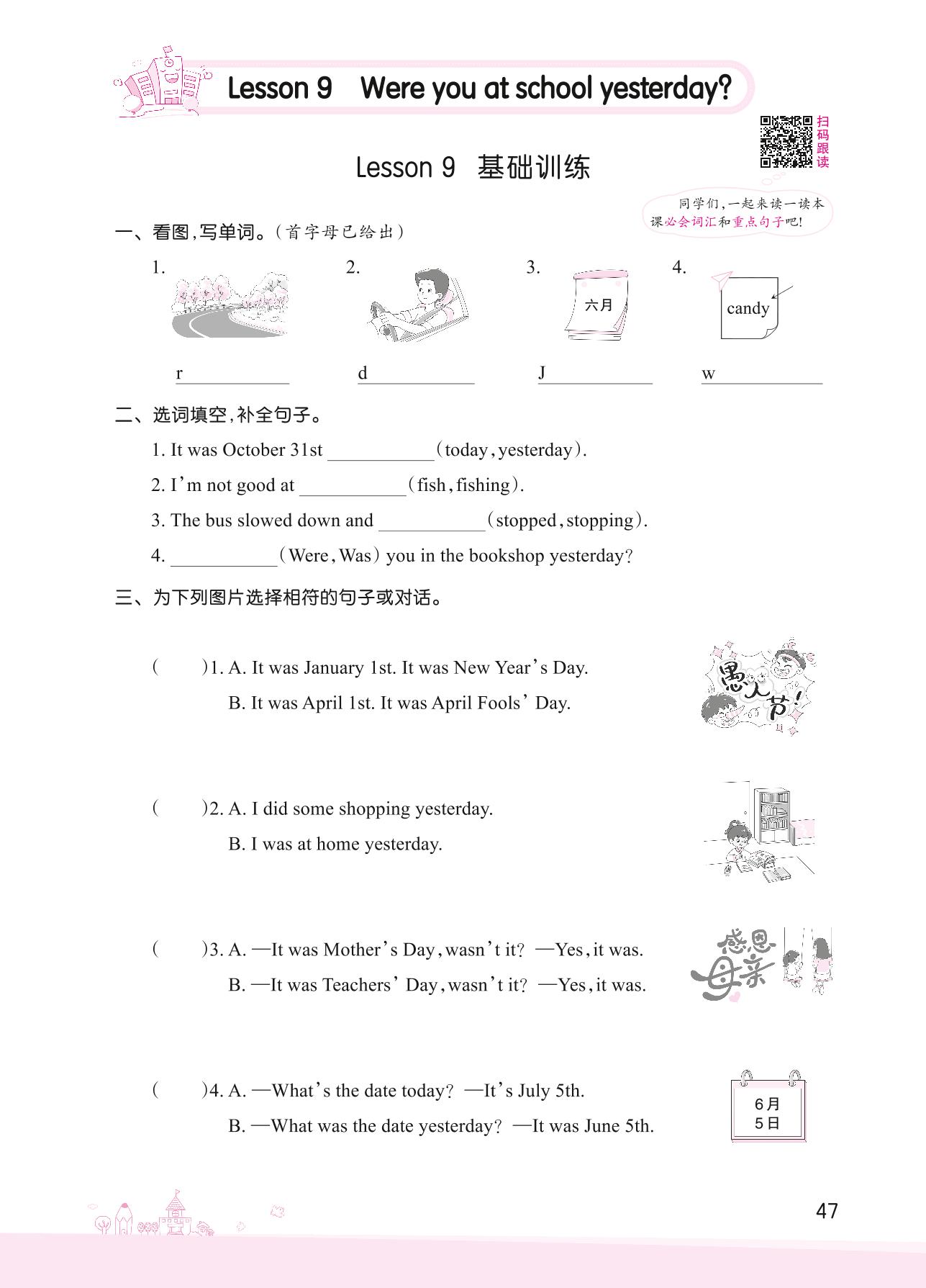 2022上册六年级英语科普版 Lesson 9 基础训练