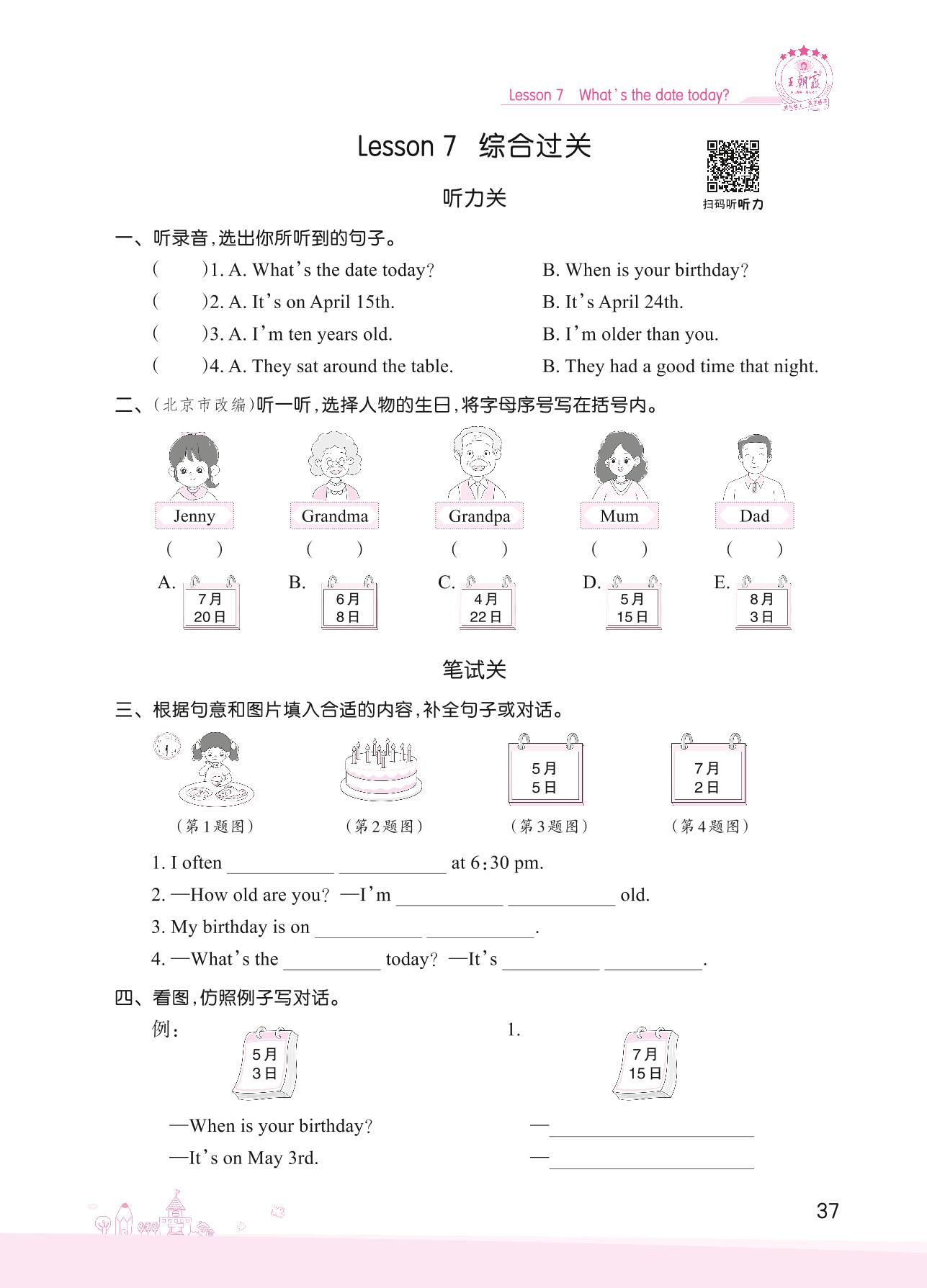 2022上册六年级英语科普版 Lesson 7 综合过关