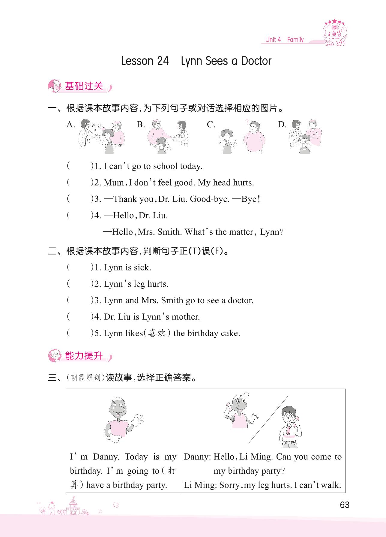 2022上册三年级英语冀教版 Unit 4—Lesson 24 Lynn Sees a Doctor