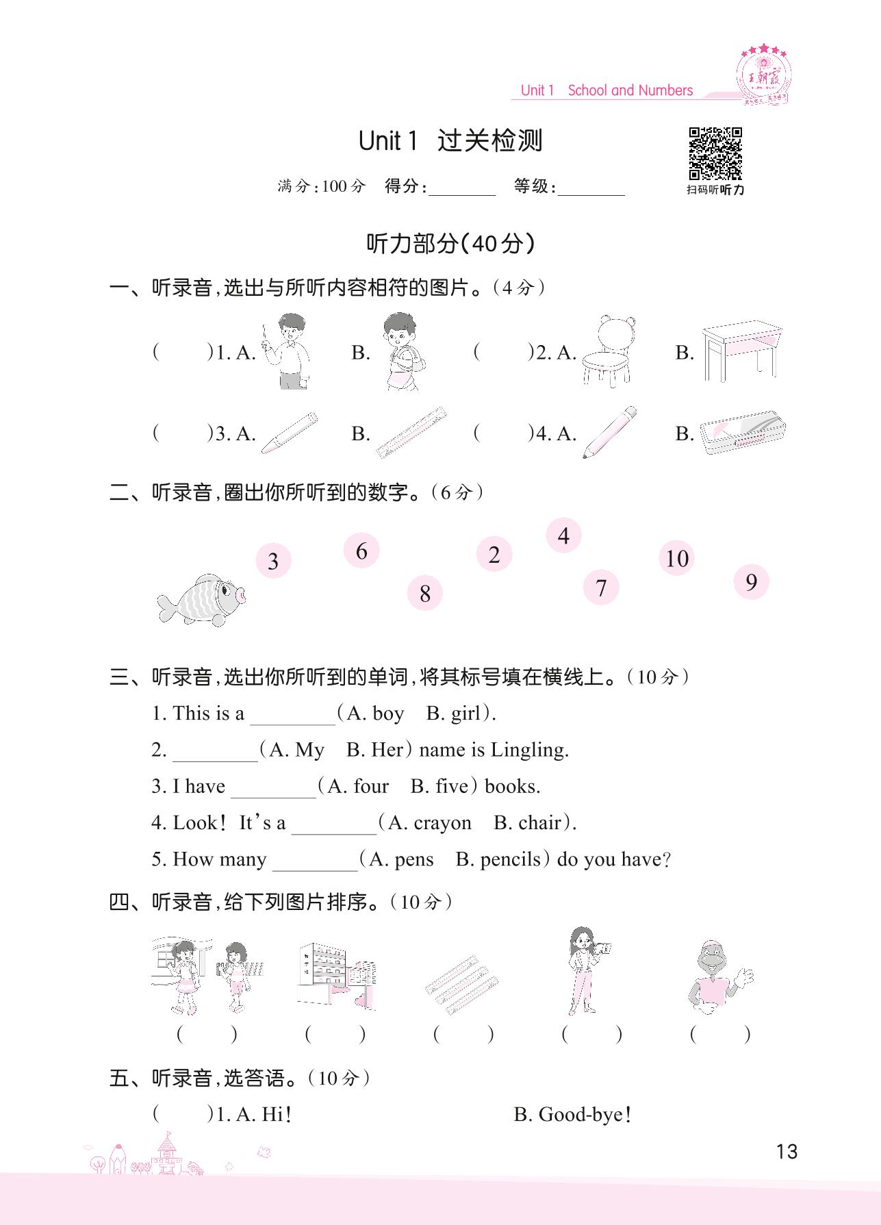 2022上册三年级英语冀教版 Unit 1 过关检测