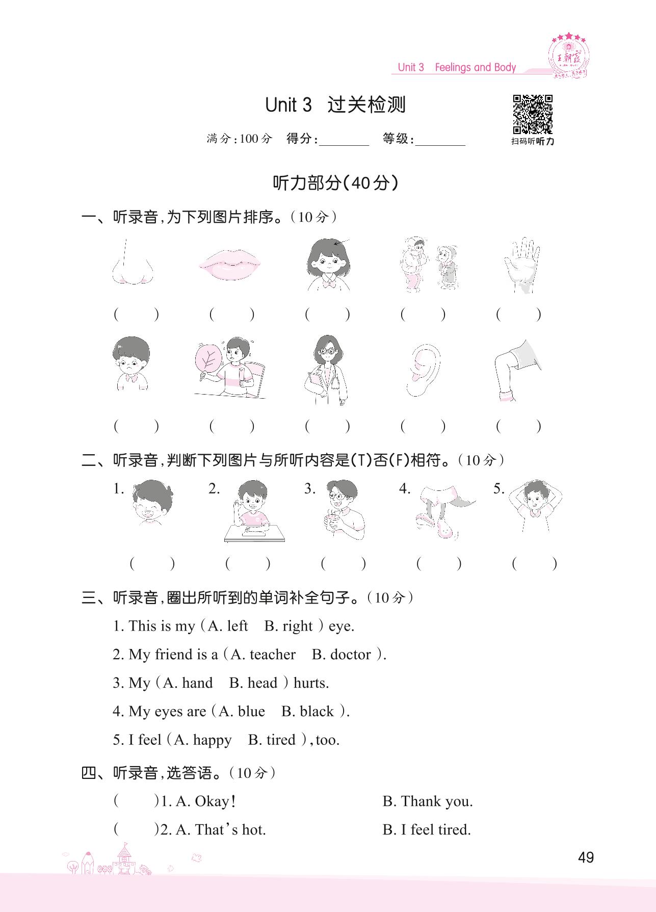 2022上册三年级英语冀教版 Unit 3 过关检测