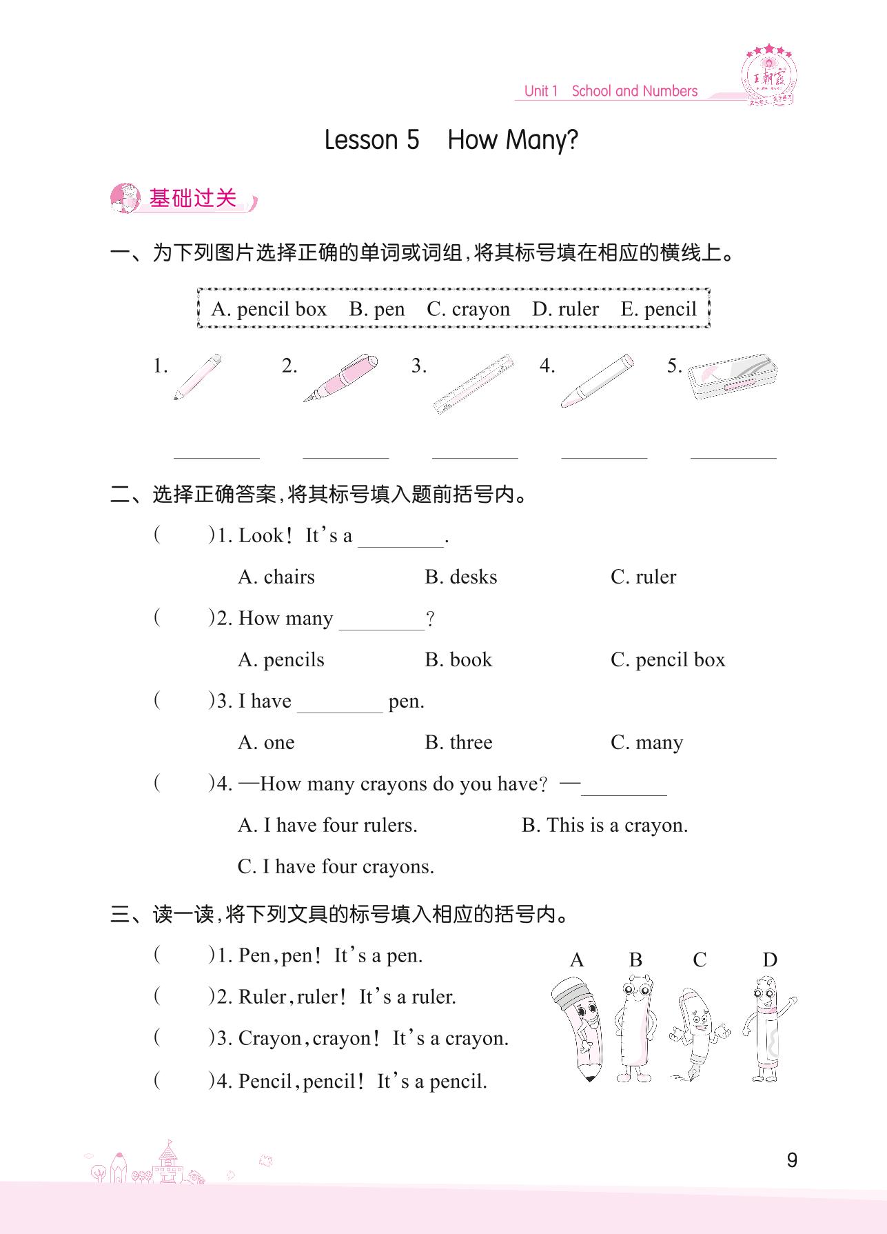 2022上册三年级英语冀教版 Unit 1—Lesson 5 How Many?