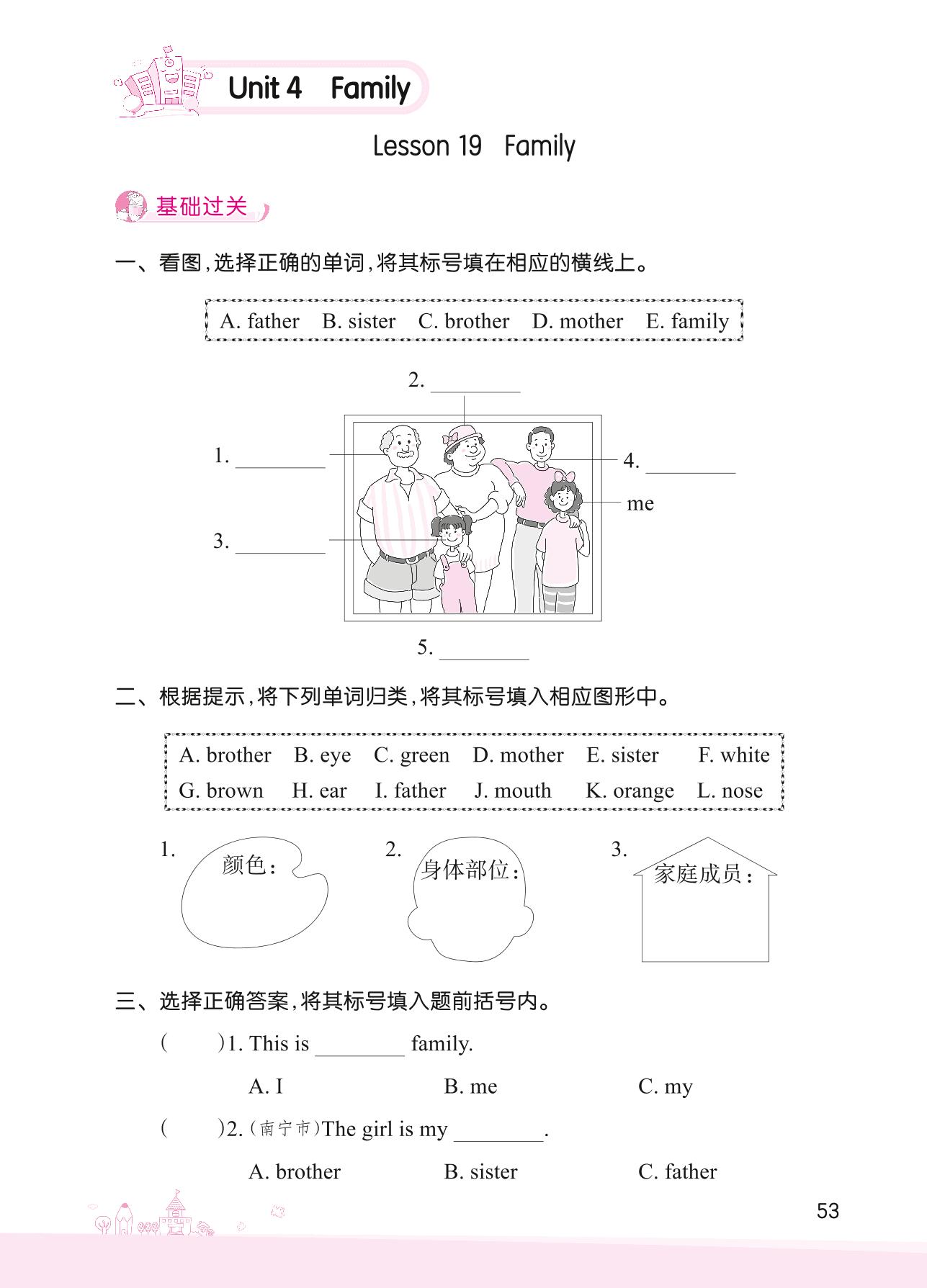 2022上册三年级英语冀教版 Unit 4—Lesson 19 Family