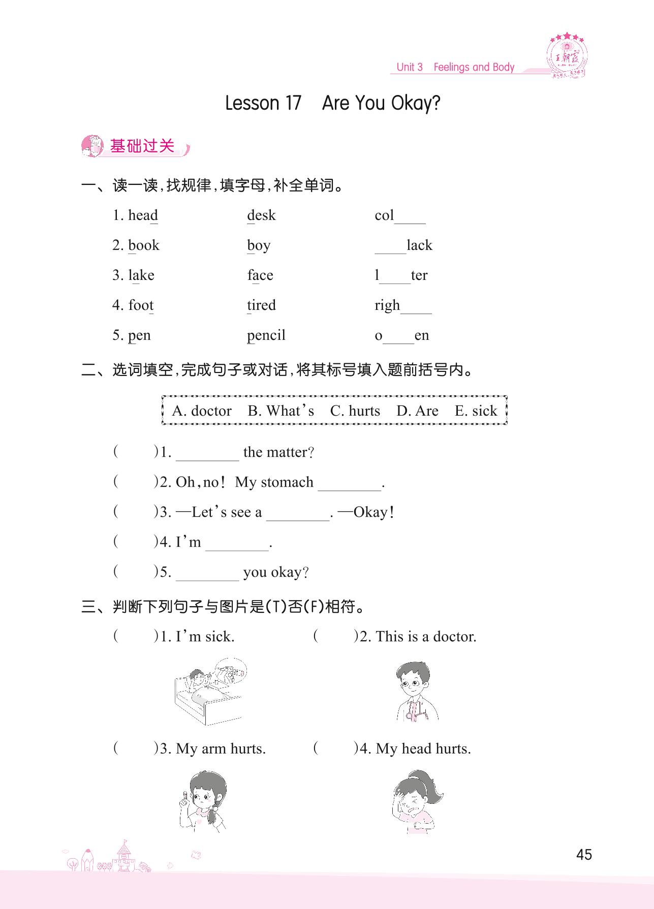 2022上册三年级英语冀教版 Unit 3—Lesson 17 Are You Okay?