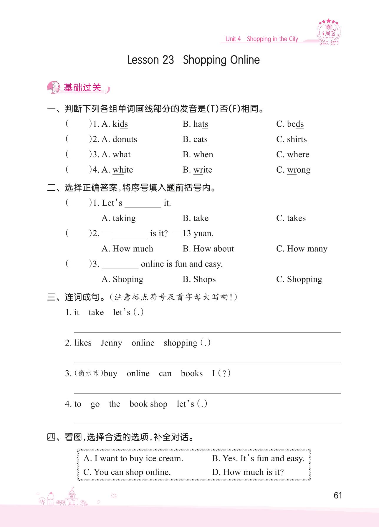 2022上册四年级英语冀教版 Unit 4—Lesson 23 Shopping Online