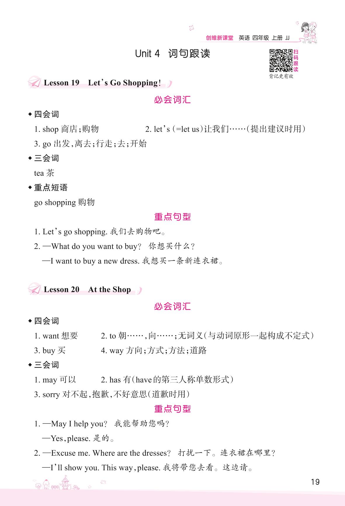 2022上册四年级英语冀教版 Unit 4 Shopping in the City—词句跟读